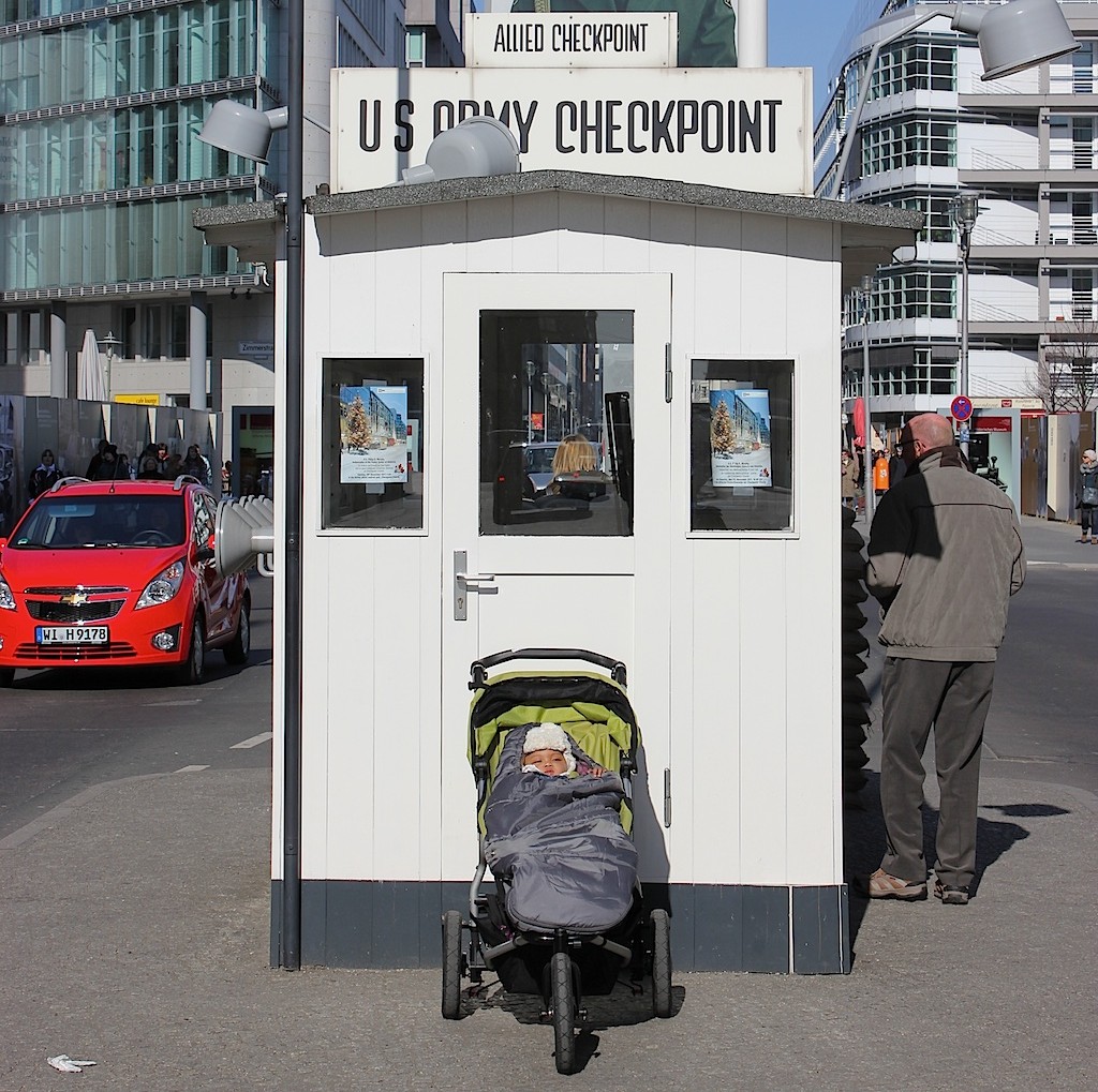 Mari in Berlin at Checkpoint Charlie Published: May 27, 2013Full size: 1024 × 1019Attached: A stroller tour of Berlin with parents » Mari in Berlin at Checkpoint Charlie