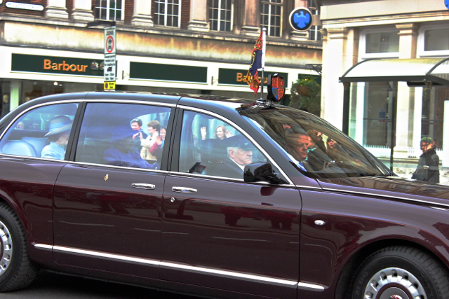 Papa expected the castle to be in the middle of a large park or something but it’s right in the middle of town. We parked almost in front of the castle where I got strapped in my stroller. Walking up to the castle, the streets were lined with people. They told us the Queen was about to pass by. How exciting!